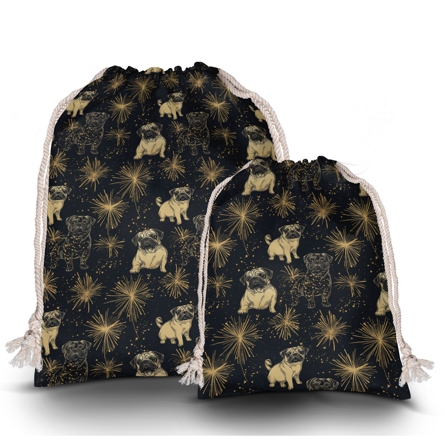 Shine bright like a pug with this Star Pug Gift Sack! Adorned with golden celestial vibes and astrological charm, this spacious sack is your ticket to stellar gift-giving. Easily accommodates large presents or multiple smaller gifts, making it the ultimate reusable alternative to traditional wrapping. Crafted for durability, this beauty withstands countless gift-giving occasions, proving that the best presents come wrapped in style and sustainability. Perfect for astrology fans and pug lovers alike!