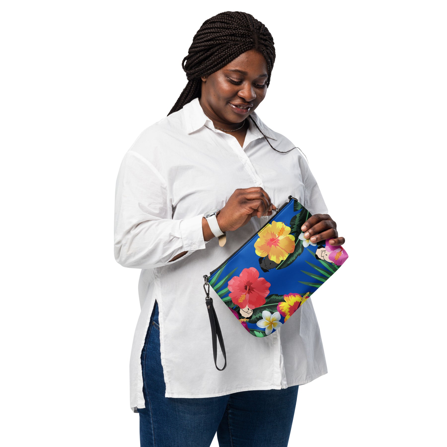 Keep your style on point and your hands free with our Large Tropical Pug Butt Crossbody Bag—the perfect companion for pug lovers everywhere. Crafted from premium faux leather with sleek dark gray hardware, this versatile bag transitions seamlessly from day to night. The secure zip-top closure keeps your essentials safe, while multiple inside pockets keep everything organized. Best of all, the removable wrist and shoulder straps let you customize your carry style. Whether you're running errands or heading out for the evening, this playful tropical-inspired bag has your back—literally.