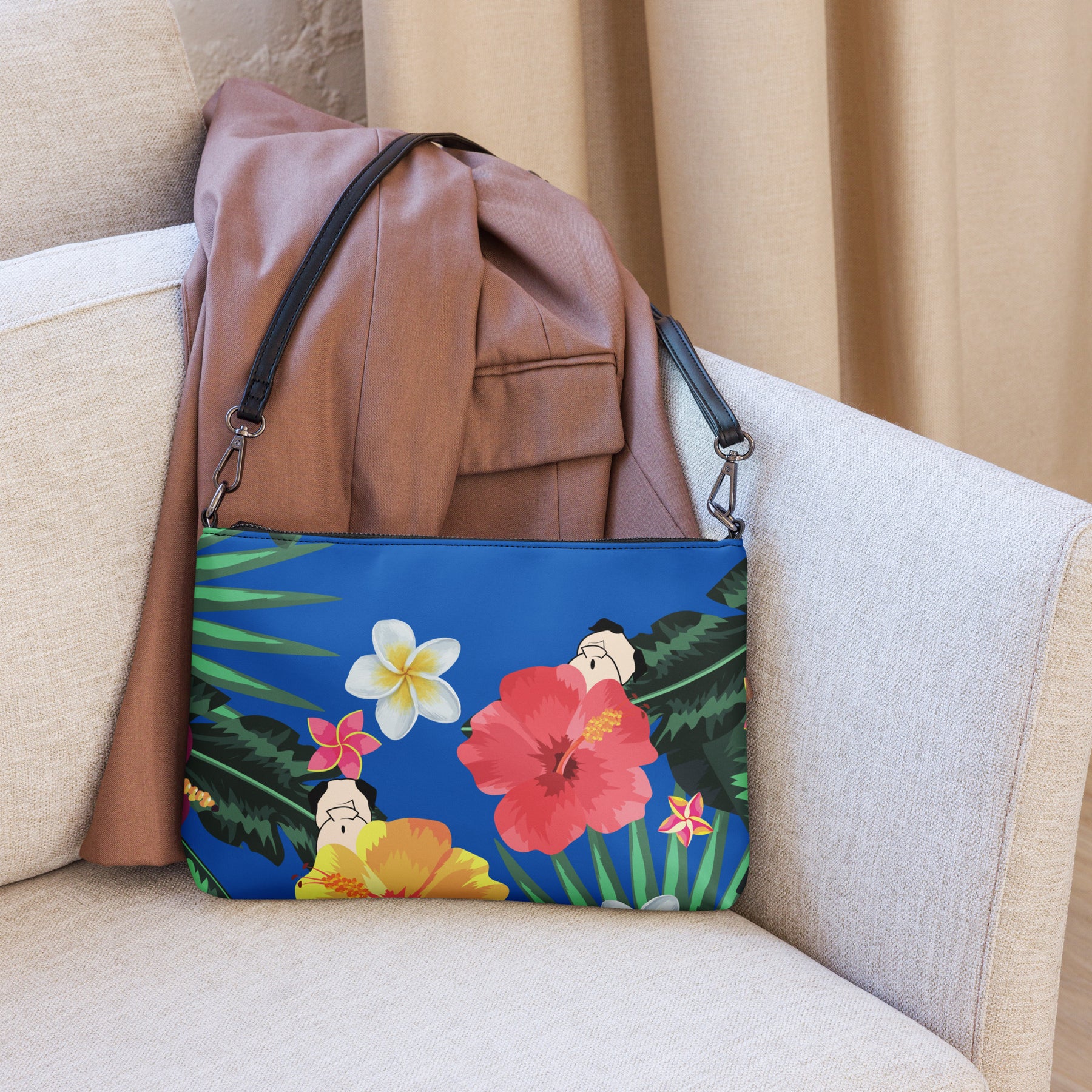 Large Tropical Pug Butt Faux Leather Crossbody Bag