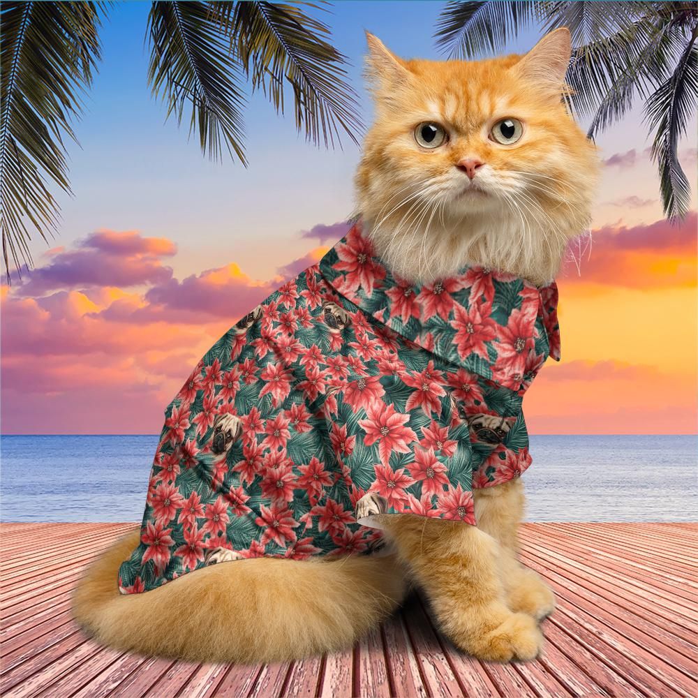 Poinsettia Pug Christmas Pet Aloha Shirt