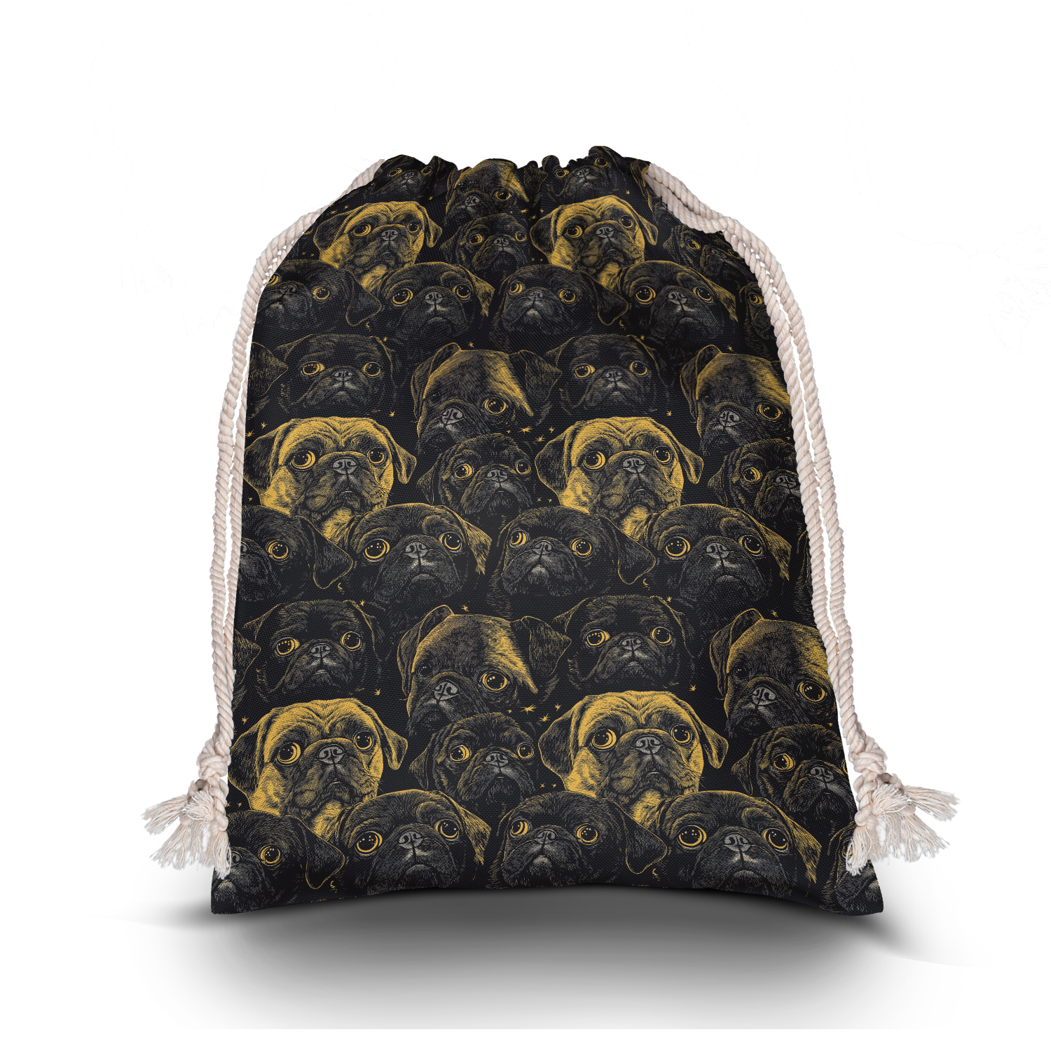 Celebrate in style with this Golden Pug Gift Sack! Whether it's a fabulous New Year's bash or an over-the-hill birthday milestone, this glittering gem delivers the perfect presentation. Spacious enough for large gifts or a bundle of smaller treasures, it's the eco-friendly answer to single-use wrapping. Built to handle celebration after celebration, this durable, reusable sack becomes a cherished keepsake that keeps on giving. Toast to good times and pug-themed fun!