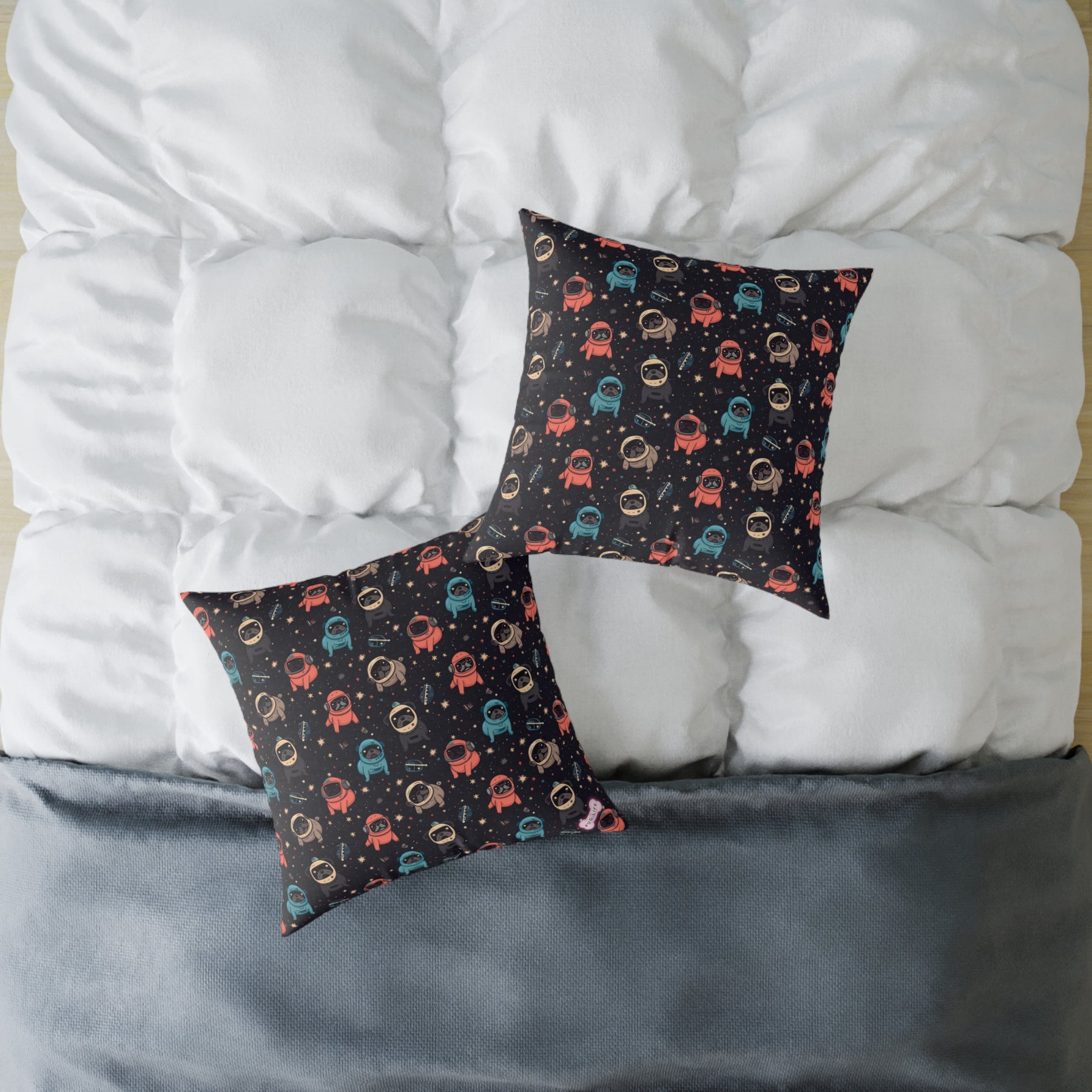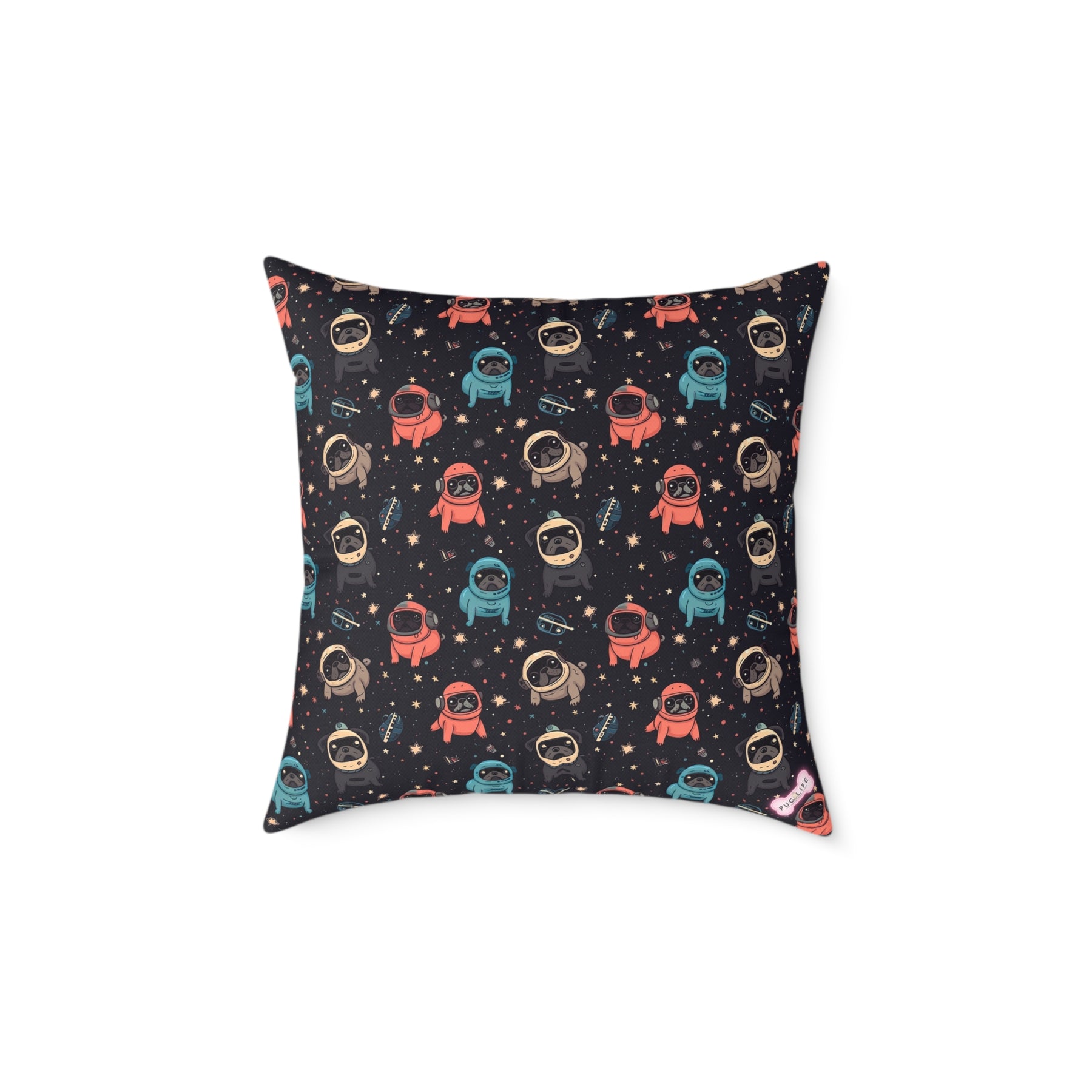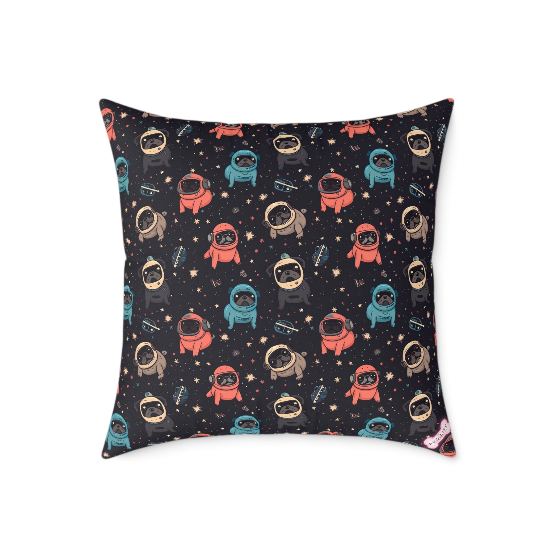 These space pug pillow cases come with polyester fill and feature the same design on both sides. The Pug Life logo appears on the back in the bottom corner. Whether looking for new pillows for you ultra modern pad or just changing up the covers for a ultra hip season, these are the pillows you're looking for.