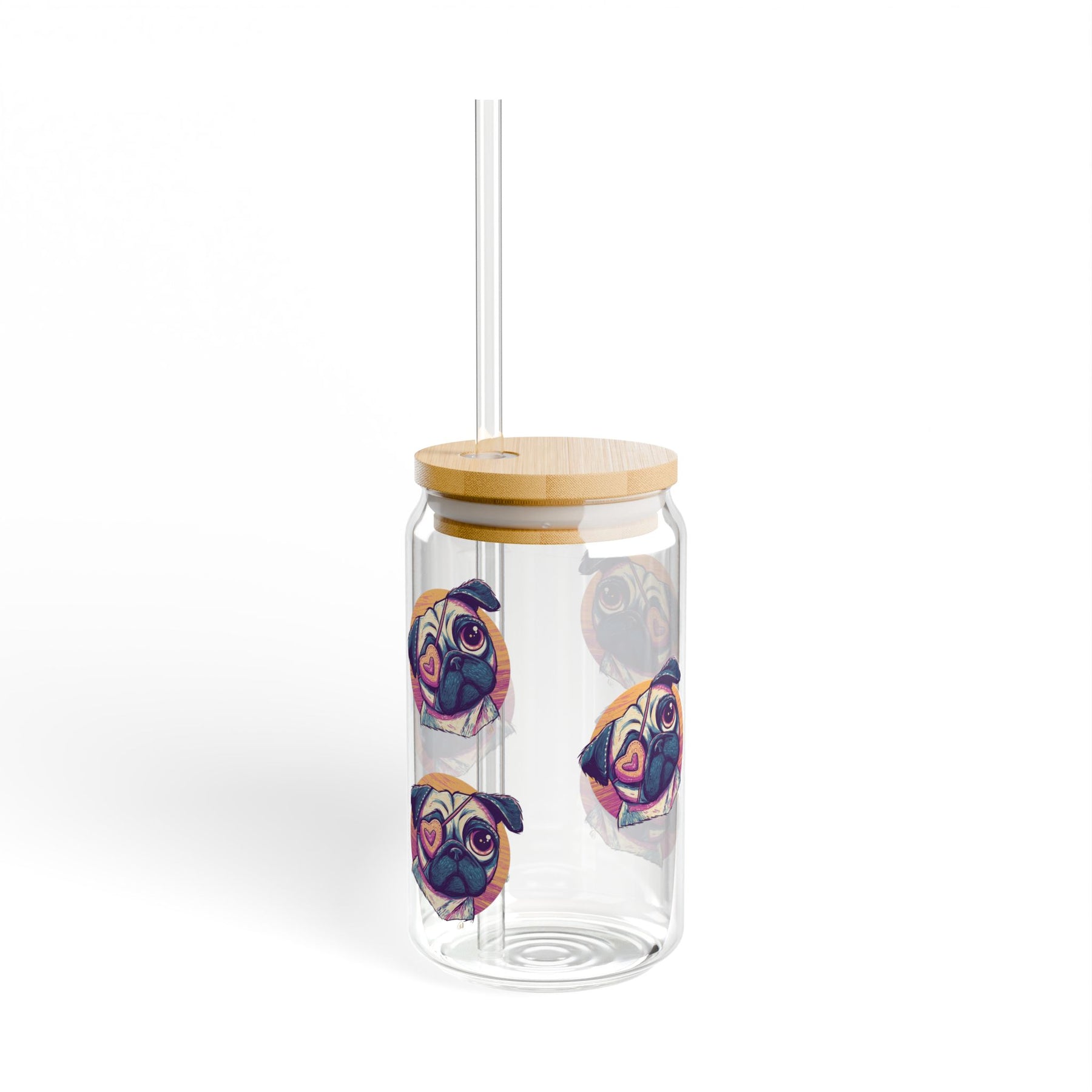 Sip with a wink — this 16oz sipper glass brings bright, playful art to everyday drinks. Clear tempered glass showcases vibrant printed designs that catch the light and spark conversation. Choose the bamboo push lid and clear Tritan straw for a tidy, portable cup that travels from desk to picnic blanket. The glass feels substantial yet sleek in hand, and the durable Tritan straw resists dents and temperature stress. Small-care note: hand wash only to keep colors sharp and the bamboo lid lasting longer. Crafted in the USA from globally sourced materials, this sipper blends cheerful style with practical details for anyone who loves unique drinkware.