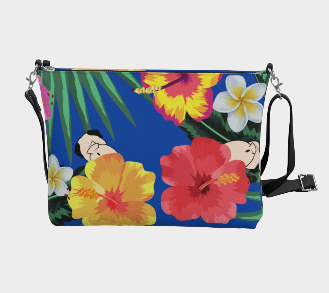 This tiki, tiki, tiki, tropical pug butt crossbody is a great way to show off your tiki pug love. Keep your style on point and your hands free with our versatile crossbody bag.
